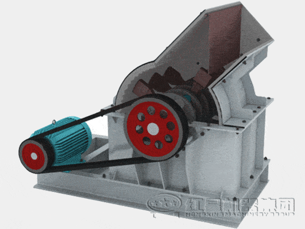 錘式破碎機的主要工作部件為帶有錘子(又稱錘頭)的轉子。轉子由主軸、圓盤、銷軸和錘子組成。電動機帶動轉子在破碎腔內高速旋轉。物料自上部給料口給入機內,受高速運動的錘子的打擊、沖擊、剪切、研磨作用而粉碎。在轉子下部,設有篩板、粉碎物料中小于篩孔尺寸的粒級 通過篩板排出,大于篩孔尺寸的粗粒級 阻留在篩板上繼續(xù)受到錘子的打擊和研磨, 后通過篩板排出機外。